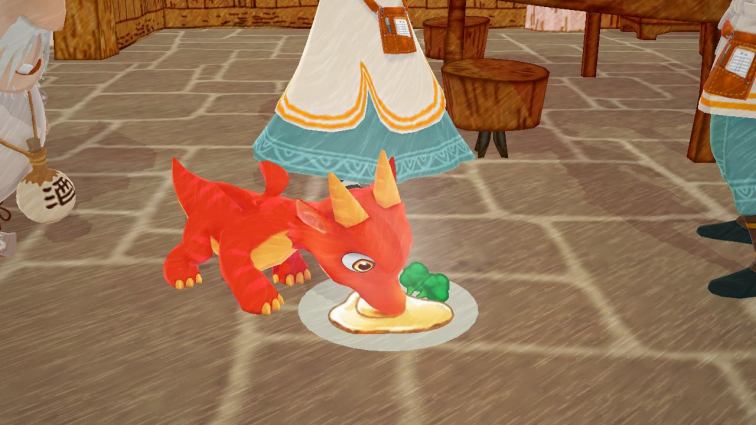 Progression is tied to recipe acquisition and daily café success, measured in customer ratings. You can assign recipes to your menu after cooking them yourself once. The better you cook the initial recipe and the better the quality of items used in it affect the quality of the food item overall. The higher quality of items offered on the menu, the more customer satisfaction you earn daily, which progresses the story and dragon growth faster. As the story progresses, the scope of your island exploration increases, allowing you to reach new areas and find new ingredients as well as recipes.