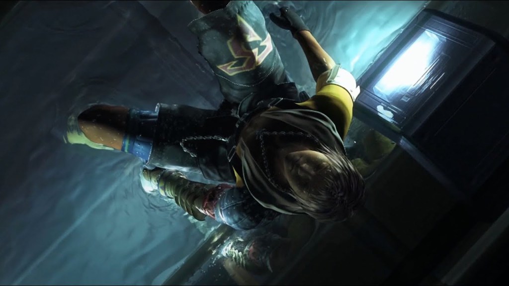 The intro cinematic to Final Fantasy X is one of the most impressive and memorable in the series and I still get chills listening to the gritty, screaming electric guitar over those futuristic action sequences. Star Blitzball player, Tidus, is in the middle of a heated game when he catches a glance of a massive wave approaching the gorgeous, neon city of Zanarkand. Seconds later, it shatters the tournament coliseum around him in a massive tumult of water and pulse-weapon fire.