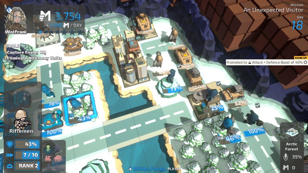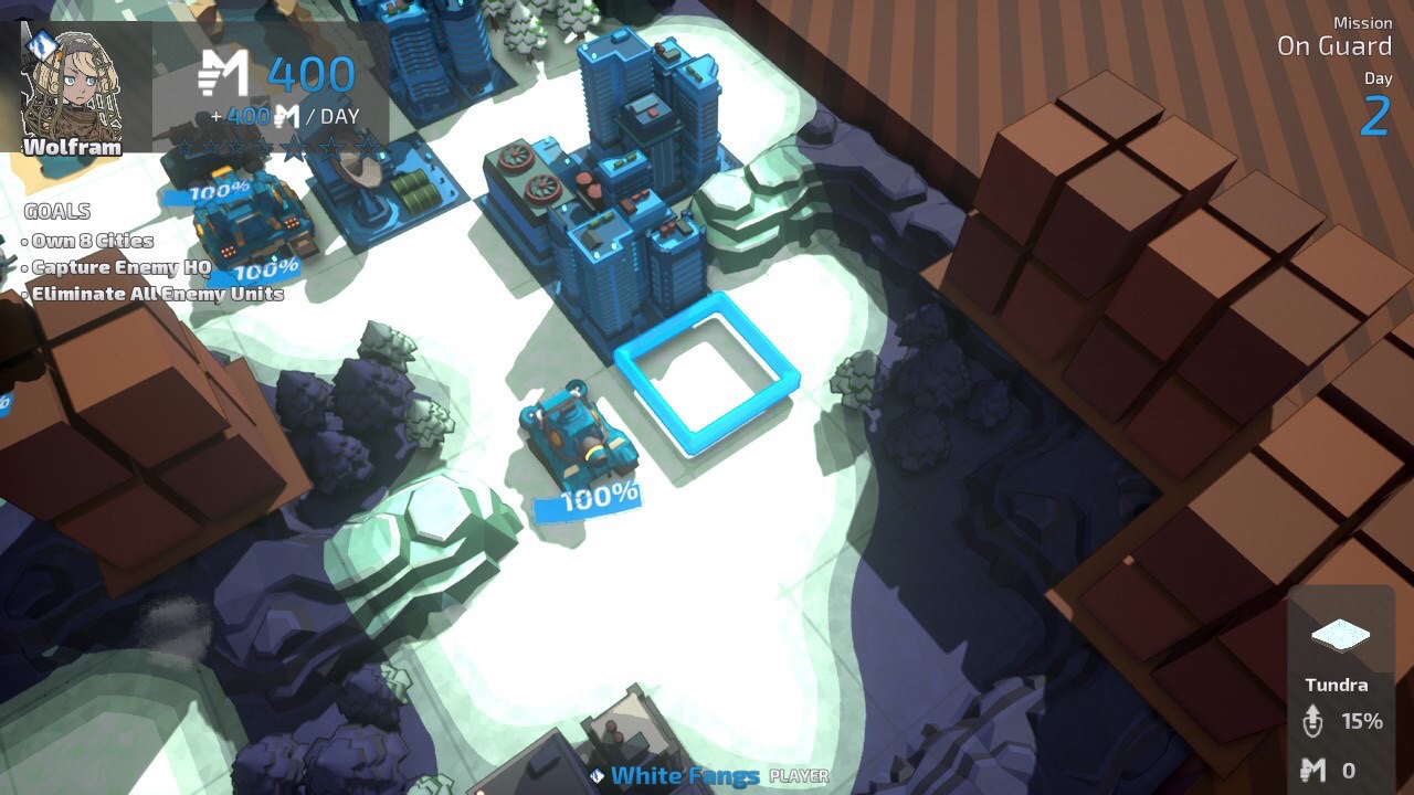 The story of Tiny Metal features several armed factions in a time period post some sort of vague, multi-nation conflict. An AI army is the common enemy and everyone is trying to get their hands on mysterious Lost Tech. It’s an uninspired plot that doesn’t compel the player to care very much about it, however the storytelling is clearly not the point of Tiny Metal, so I did not weigh this factor heavily.